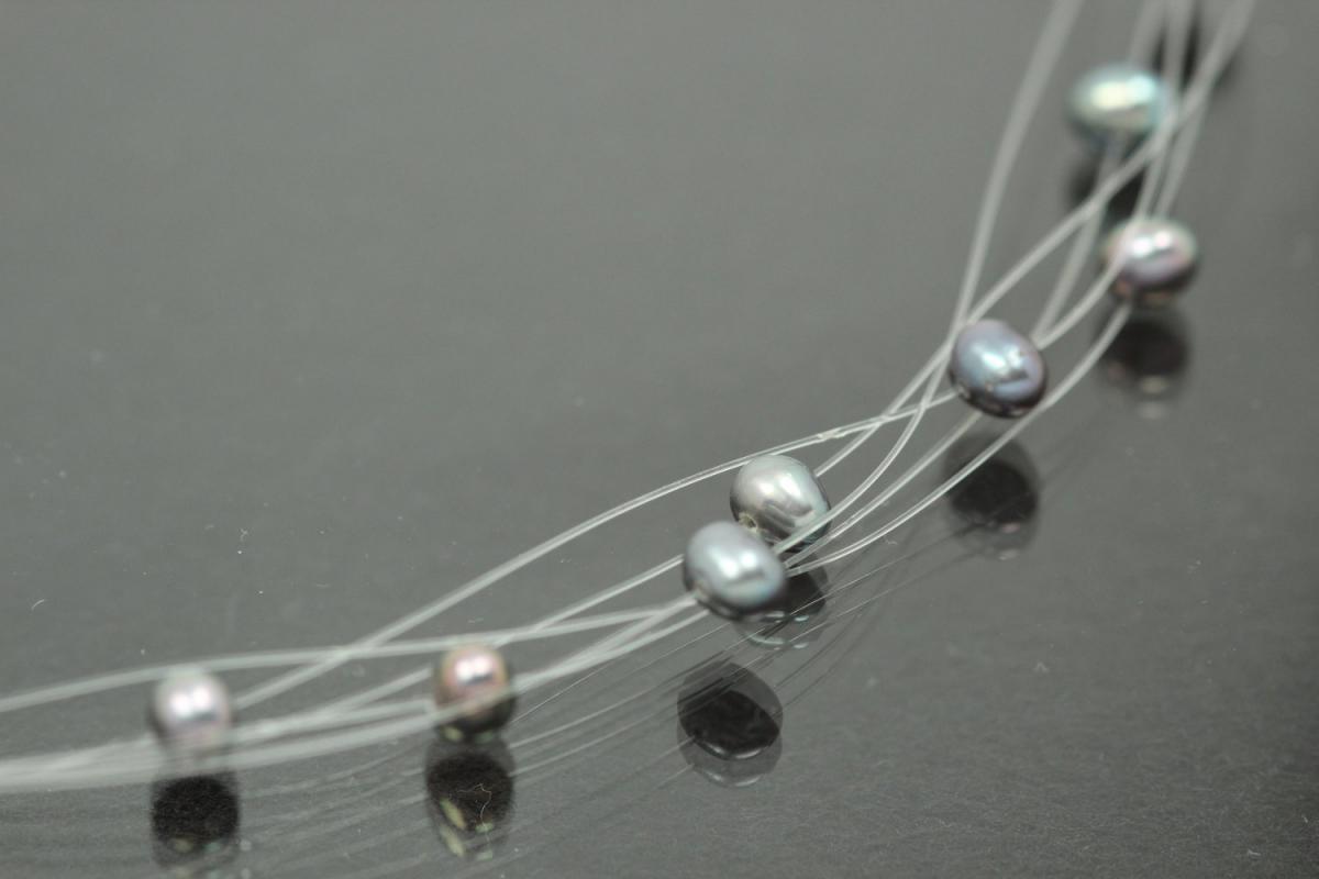 aLEm Peacock Süßwasserperlcollier "Sommerflair" 925/- Silber rhodiniert mit Federringverschluss, ca Maße Nylonperlcollier L 41,0cm, ca Maße Mittelteil H 37,5mm, B 38,0mm, ca Maße peacock Süsswasserperlen Potato 3,9mm bis 4,8mm. Das weiße Nylonperlcollier wurde in der Mitte mit zwei halbrunden Bögen die zusmmengelötet wurden gerafft. Unterhalb der Bögen wurde ein Perlenstrauch angearbeitet. Die Besonderheit an dem Nyloncollier bezieht sich auf die kaum Sichtbarkeit des Nylon beim tragen auf der Haut, so dass die Perlen einen einzigen Blickfang darstellen. Als Verschluss wurde ein Federing mit zwei zierlichen Endglieder gewählt um dieses Perlcollier edel zu halten. Die Leichtigkeit auf Grund des geringen Gewichtes verleiht diesem edlen Sommerflair einen angenehmen Tragecomfort. Selbstverständlich bringt dieses Perlenmeer Freude und ist gleichzeitig ein idealer feierlicher Brautschmuck und Wegbegleiter der Braut. Er soll Glück bringen ein Leben lang. (Sämtliche ca.Maße wurden an der höchsten und breitesten und stärksten Seite bzw. Fläche gemessen. Sollten sich die ca. Maße um ein Endteil- bzw. Endstück handeln, sind diese maßgebend für die Schlaufeninnenmaße des aufzufädelnden Teils bzw. Anhängers). Dieses ausgefallene Perlcollier in seiner Pracht ist ein fester Bestandteil der exklusiven Kollektion " Infinte Love by alain LE mondial " Nobless Oblige. Die Oberfläche wurde poliert und zum Schutz des Grundmetalles 925/- Sterlingsilber und als zusätzlichen Anlaufschutz galvanisch mit hochwertigem Rhodium veredelt. Gewicht Perlcollier incl. per Stück ca.8,2gr